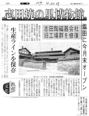 | 「志田焼の里博物館」は志田陶磁器株式会社の工場跡を博物館として再現したものである。主に明治から大正期の窯業設備を一望できる。町営の施設となっている。 |