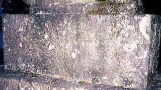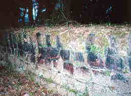 西山窯跡 陶山社に隣接する森の中に残存している。窯壁であるが、唯一窯場であったことをうかがわせる貴重なものである。すでに日は陰りストロボでようやく撮影できた。周辺には磁器の破片が暗闇にところどころ白く浮かんでいた。当時の窯跡がそのまま残っていれば解明も容易であろう。 |
