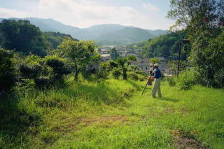 志田西山窯全景 右側正面が草創期の窯場である志田1号窯の場所で、「光武」の地名があり光武山の呼び名がある。志田西山という名称の山があるわけではなく通称名である。ここが伊万里全盛のころ、全生産高の3割を誇った一大窯業地であった面影はない。ここであの志田染付皿が生産されたとは、当の九州地方でも忘れ去られていた。 |
