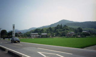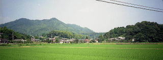 志田東山全景 正面の小高い山が東山窯場のあった場所である。西山より後れて開窯された。支配は鍋島本藩で、西山の蓮池支藩領とは異なっていた。本・支藩の関係かもしれないが、それほどの製品差はないようである。正面の人家のある表道を迂回して背後から窯場や東山山神社へ達することができる。 |