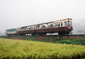 寿6001列車 愛知県在住の新郎新婦が、新郎の故郷を走る天浜線でトロッコ列車を使用したウエディング列車を走らせてくれました。 通常のトロッコ編成からTH211をTH106に車両変更。オリジナルカラーのTH1型が登場しました。 まずは、天竜川橋梁でお迎え。ぐずついていた空模様もこの時は明るい曇り空だったのですが・・・ トロッコ列車はゆっくり進みますので車で簡単に追いつきます。途中宮口駅でTH211との交換が見られましたが、先回りして都田〜浜松大学前へ。 途中から降りだした雨が、この頃から激しくなってきました・・・ トロッコのお客さんは大丈夫でしょうか? |