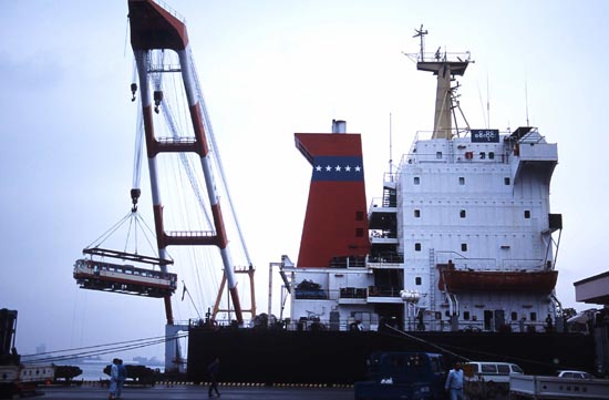 一緒に中古自動車も積み込まれているそうです。もしかすると定期的に来ているのかな?
